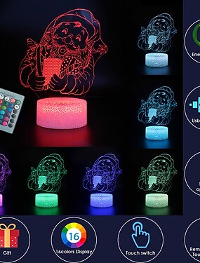 Юниверсальная 3D ночная лампа LED Ночной светильник меняющий цвет Очаровательный Декоративный Удаленный контроль Сенсорный диммер Градиентный режим Рождественская батарея AA USB 1 шт