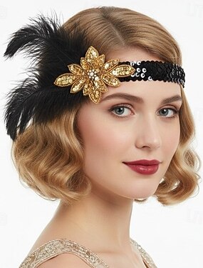 Бурные 20-е 1920-е годы Обруч в стиле флэппер Головные уборы Аксессуары для создания прически Великий Гэтсби Девушка-обманщик Перо Маскарадный костюм Жен. Рождество Карнавал