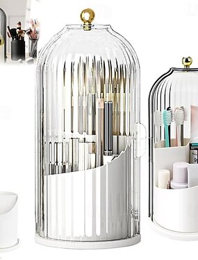 Пылезащитная подставка для зубных щеток с крышкой, коробка для хранения кистей для макияжа на туалетном столике, подставка для ручек и органайзер в виде клетки для птиц, вращающийся органайзер для