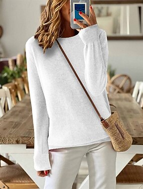 Жен. Вязаная ткань Пуловер Элегантный стиль Мода Симпатичные Стиль Сплошной цвет Вырез под горло Трикотаж Длинный рукав Обычные топы Вязать на открытом воздухе Дом Офис Черный Белый Осень Зима