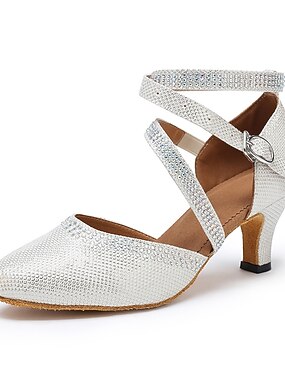 Жен. Обувь для латины Танцевальная обувь В помещении Профессиональный стиль ЧаЧа Блестящий кристалл с блестками и драгоценными камнями Более мягкая стелька Высокий каблук Круглый носок С пряжкой