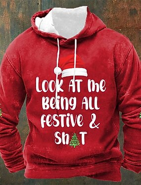 Новогодняя тематика Муж. Графика Новогодняя ёлка шляпа Толстовка Толстовка с принтом Толстовка с капюшоном Мода Уличный стиль Праздник На каждый день Винтаж Ретро Капюшон На выход фестиваль