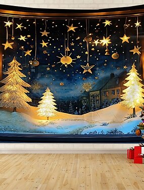 Рождественский подвесной гобелен, рождественская елка, звезды, украшения, шары, подарочные коробки, большое настенное искусство, настенное панно, занавеска, дом для отдыха, спальня, гостиная, праздничная вечеринка, сезонное праздничное украшение