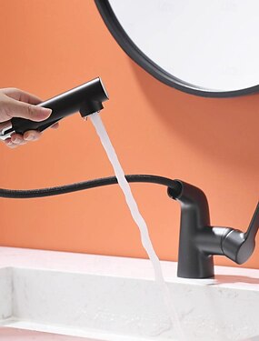 смеситель для раковины с выдвижным изливом, латунь, подъемный, 3 режима, гальванопокрытие / окраска, центральная часть, одна ручка, одно отверстие, поворотный излив для ванны с холодной и горячей водой