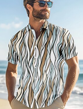 Муж. Геометрический принт Линии Повседневная рубашка Кнопка рубашка С короткими рукавами На каждый день Прибегнуть Повседневные Лето Весна Отложной Кнопка вверх Синий