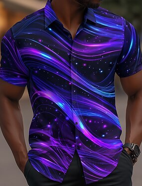 Муж. Градиент Волны Неоновое свечение Рубашка Кнопка рубашка Повседневная рубашка С короткими рукавами Мода Повседневная Повседневные Отпуск Лето Весна Отложной 3D печать рубашки с воротником