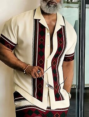 Муж. Геометрический принт Полоски Этнический Рубашка Рубашка гуаябера Кнопка рубашка С короткими рукавами Винтаж Ретро Повседневные на открытом воздухе Отпуск Лето Весна Отложной 3D
