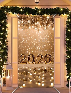 Новый год Плакаты Дверная крышка Наружные баннеры с Новым Годом 2026 г. Симпатичные Стиль 3D