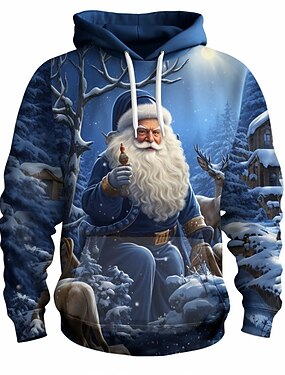 Рождественские мужские толстовки с капюшоном с изображением Санта-Клауса с 3D-принтом, модные толстовки с 3D-принтом для спорта, отдыха на природе, королевского синего цвета с длинными рукавами и