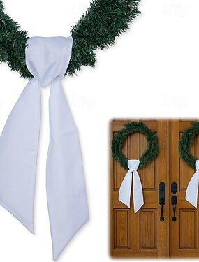 2 белых венка-ленты в льняном стиле для входной двери, 55"x5.1" из чистой ленты, вышитая монограмма своими руками, для рождественских праздников, для украшения стен фермерского дома