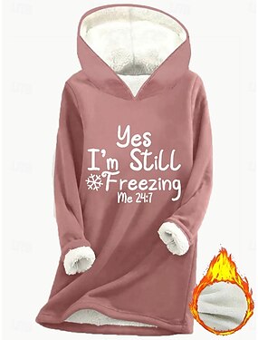 Жен. Толстовка с капюшоном и пуловером Графика Буквы Теплый На каждый день Шерпа Флис Длинный рукав Капюшон Длинные топы Для улицы На каждый день Повседневные С принтом