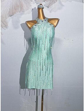 платье для латинских танцев сальса с бахромой и кисточками из кристаллов/стразов для женщин для тренировок без рукавов из тюля из спандекса