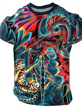 Муж. Дракон Футболка С короткими рукавами Футболка 3D печать Вырез под горло Рубашка преувеличены Оригинальный рисунок Для вечеринок Для улицы Повседневные Синий Лето Весна Все сезоны Одежда S M L XL
