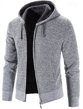 Муж. Кардиган Укороченный свитер Свитер на молнии Вязаный свитер Рельефный узор Вязать Обычные топы Карман Флис Полотняное плетение Капюшон Мода Классика Отпуск На каждый день Одежда Осень Зима