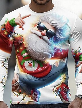 Новогодняя тематика Муж. Графика Рождественский образец Футболка Длинный рукав Футболка 3D печать Вырез под горло Рубашка Мода Оригинальный рисунок На каждый день