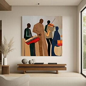 Абстрактная картина маслом ручной работы с изображением джазового оркестра, красочная современная музыкальная живопись на холсте, винтажная картина с джазовым оркестром, ретро музыка, афроамериканская