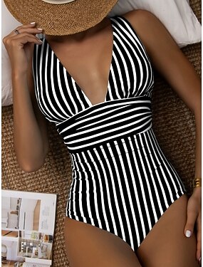 Женский купальник в одном слитном варианте с эффектом похудения монокини без спинки контроль живота высокая талия стройный для отпуска пляжная одежда омбре полосатый U-образный вырез без рукавов