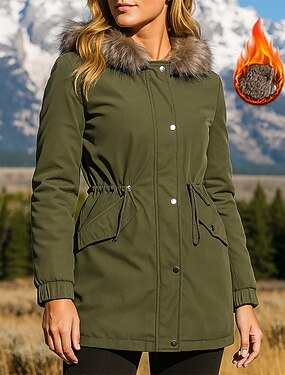 Муж. Повседневная куртка Куртка с капюшоном Парка Отпуск Повседневные Сохраняет тепло Карман Осень Зима Полотняное плетение Мода Классика Капюшон Обычная Черный Темно синий Цвет хаки Жакеты