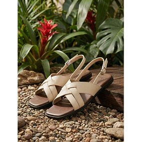 Элегантные женские кремовые плетеные сандалии на плоской подошве — удобные шлепанцы с квадратным носком и ремешком на щиколотке для отдыха на открытом воздухе, курортов и прогулок в тропиках.