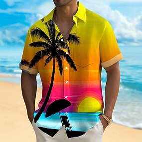 Муж. Кокосовая пальма Пейзаж Тропические растения Гавайская рубашка Кнопка рубашка Рубашка Алоха С короткими рукавами Гавайский Праздники Одежда для пляжа Лето Весна Отложной 3D