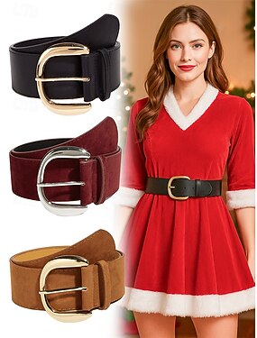 Женский рождественский ремень из искусственной замши – мягкий и стильный, доступен в нескольких цветах, идеально подходит для зимних праздников и торжественных случаев.