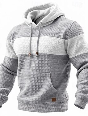 Муж. Толстовка Толстовки с вафельным принтом Толстовка с капюшоном и пуловером Черный Военно-зеленный Темно синий Хаки Светло-серый Капюшон Полотняное плетение Пэчворк Цветовые блоки Текстура