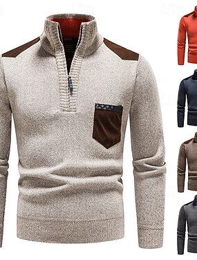 Муж. Вязаная ткань Пуловер Свитер Свитер-пуловер с застежкой-молнией на четверть Рельефный узор Вязать Обычные топы Трикотаж Облегающий крой Полотняное плетение Хомут Вязаная одежда Современный