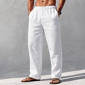 Муж. Льняные брюки Штаны Летние штаны Кулиска Эластичная талия Прямая нога Полотняное плетение Комфорт Дышащий Полная длина Повседневные на открытом воздухе Праздники Мода Классический Синий Черный