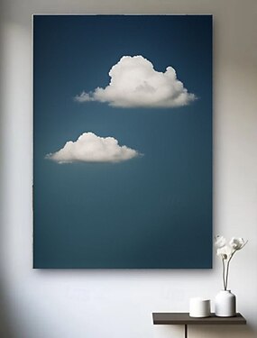 Картина маслом на холсте с абстрактными облаками и ночным небом, оригинальная, сине-белая, большая картина с небесными облаками для гостиной