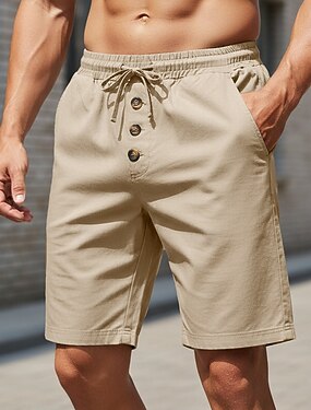 Муж. Шорты Льняные шорты Летние шорты Пляжные шорты Кулиска Эластичная талия Пуговицы Полотняное плетение Один цвет Комфорт Дышащий Длина колена Повседневные на открытом воздухе Пляж Отпуск Мода
