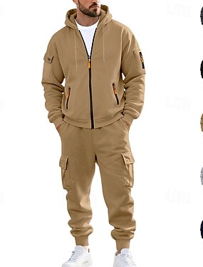 Муж. Толстовка Спортивный костюм Толстовка с капюшоном и брюки Набор Толстовка с капюшоном Повседневные на открытом воздухе Отпуск На каждый день Кулиска Застегнуться Полотняное плетение