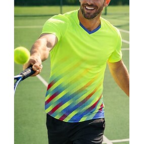 Муж. Градиент Спортивная рубашка Теннисная рубашка Теннисная футболка С короткими рукавами Быстровысыхающий Стреч Влагоотводящие Дышащий Теннис Гольф Пиклбол V-образный вырез Верхняя часть