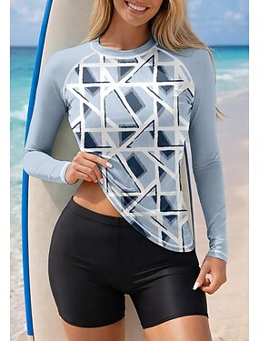 Жен. Стандарт Рашгард Купальники танкини Костюм для серфинга Геометрический принт Блокировка цвета 2 предм Съёмные вставки Бойлег УФ-защита от солнца UPF50+ Эластичный Длинный рукав Купальники Рашгард