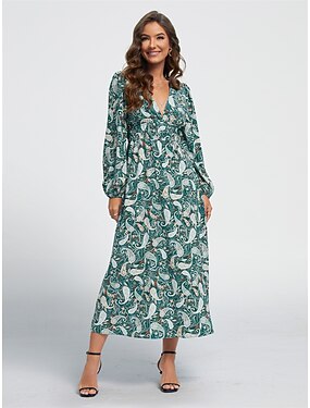 повседневное платье миди с цветочным принтом и V-образным вырезом пейсли