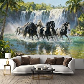 Большие лошади, бегущие в воде, гобелен, настенная роспись, фотофон, одеяло, занавеска для дома, спальни, гостиной, декор