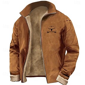 Муж. крупный рогатый скот Толстовка Толстовка Толстовка Воротник-стойка Повседневные С принтом Уличная одежда Застегнуться Осень Зима