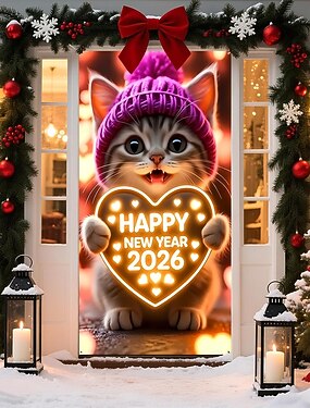 Новый год Плакаты Дверная крышка Наружные баннеры с Новым Годом 2026 г. Симпатичные Стиль 3D