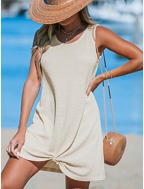 Жен. Купальники Накидка Купальное платье купальник Отпуск Одежда для пляжа Сплошной цвет Круглый вырез Без рукавов Купальники