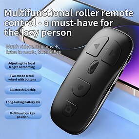 Устройство для перелистывания страниц по Bluetooth для Kindle, пульт дистанционного управления TikTok с колесиком прокрутки, беспроводная кнопка затвора и зума для селфи-камеры на iPhone, iPad и Android, длительное время работы от батареи.