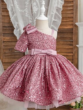 Дети Девочки Платье для вечеринки Сплошной цвет С короткими рукавами Особые случаи День рождения Пайетки Принцесса Милая Полиэстер До колена Платье для вечеринки Лето Весна Осень 4-13 лет