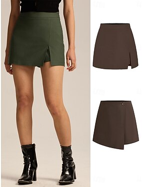 Жен. Отпускная юбка Мода На каждый день Мини Завышенная Подол Полотняное плетение Неэластичная Повседневные Для улицы Винный Черный Военно-зеленный Темно синий Весна Полиэстер