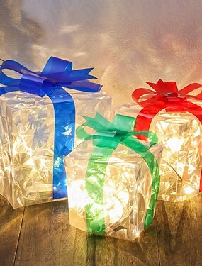 Рождественский LED-светильник в форме подарочной коробки с светящимся бантом 8 режимов водонепроницаемая батарейка 15,5/20,5/25,5 см для украшения атмосферы на вечеринках внутри и снаружи