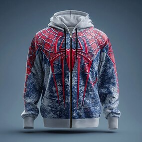 Halloween Муж. SPIDER 3D Толстовка Панк Круто Готика Длинный рукав Вырез под горло Уличная одежда Для вечеринок Подарок Синий Лиловый Зеленый Серый Кулиска Молния Осень Зима Дизайнер S M L XL XXL XXXL