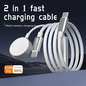 Беспроводная зарядка для Apple Watch iWatch с магнитным PD, быстрая зарядка, кабель Type-C 2-в-1, 65 Вт, 20 В, 3 А