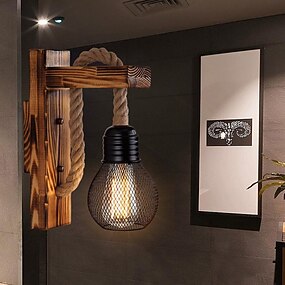 веревка из натурального волокна, коричневый настенный светильник, затененный, 1 головка, настенный светильник для коттеджа, промышленные винтажные бра с деревянной задней панелью для бара, прихожей,
