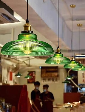 Подвесной светильник из зеленого полосатого стекла, большая купольная винтажная люстра на 1 лампу для кухонного острова, столовой и кафе-бара, 110-240 В