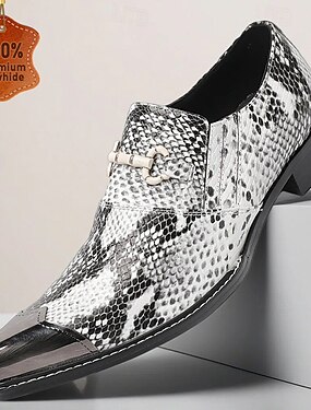 Мужские кожаные лоферы с змеиным принтом - стильные туфли с острым носком и металлическими наконечниками