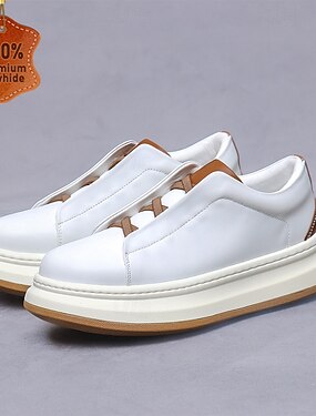 Мужские кроссовки-слипоны — повседневные низкие туфли из искусственной кожи с эластичной конструкцией без шнурков, контрастными коричневыми акцентами и массивной подошвой для городской улицы,