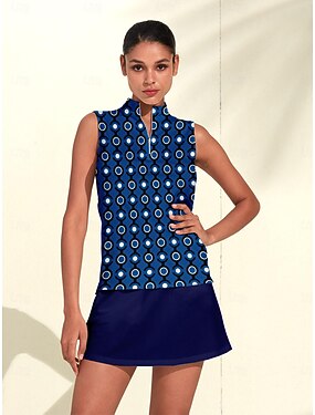Жен. Футболка-поло Синий Без рукавов Верхняя часть Огурцы Женская одежда для гольфа Одежда Одежда Одежда