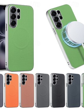 телефон Кейс для Назначение SSamsung Galaxy S26 S26 Плюс S26 Ультра Кейс на заднюю панель Магнитный адсорбционный футляр Полная защита тела Защита от удара Ретро Металл